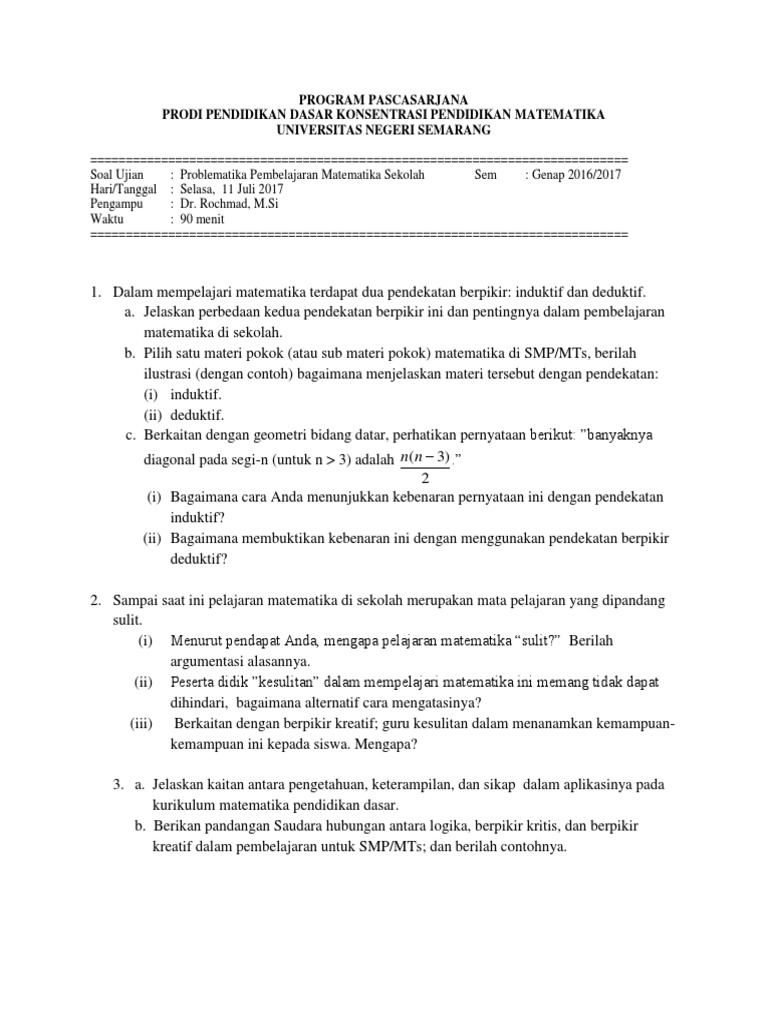 Contoh Soal Penalaran Induktif Dan Deduktif Dalam Matematika - Berbagi Contoh Soal from imgv2-1-f.scribdassets.com A, b, c benar jawaban: Contoh di atas adalah contoh klasik penalaran deduktif. Kesimpulan a sama dengan c pada hakekatnya bukan merupakan pengetahuan baru dalam arti yang sebenarnya, melainkan sekedar konsekwensi dari dua pengetahuan yang telah kita ketahui sebelumnya. Melanjutkan contoh penalaran induktif di atas dapat dibuat silogismus sebagai berikut : Terdapat banyak sampah yang menumpuk karena. Contoh soal psikotes penalaran umumnya terdiri dari: kerjakan seluruh soal di bawah ini secara mandiri. Contoh jawaban soal nomor 3.
