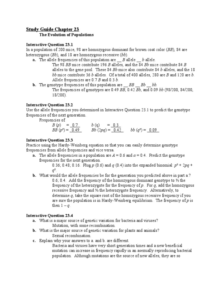 Learn vocabulary, terms and more with flashcards, games and other study tools. Summarize the key points of your discussion here. You have sampled a population in which you know that the percentage of the homozygous recessive genotype (aa) is 36%. In the previous tutorial in this series, we counted allele frequencies in 1908, the mathematician g.h. B which individuals in the original population appear to display better fitness.